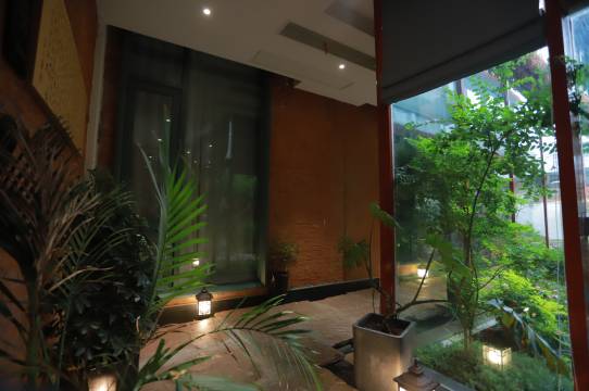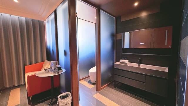 楼道是全季那种白茶香味,房间像喆啡的装修风格,被套床单是鹅黄色这个感觉特别加分,还有榻可以喝茶,一楼公共区域的石阶地面和庭院感觉住进了中式园林,设计上很用心了!