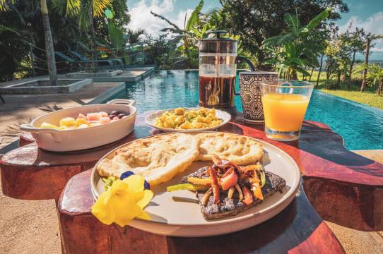 在忙碌的一天后,不妨去池畔酒吧轻松一下。每天 07:00 至 11:00 提供收费的当地美食早餐。