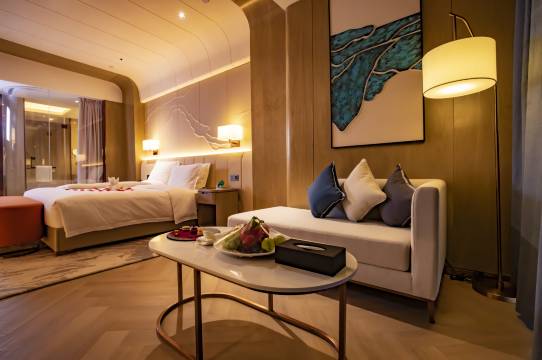宾馆拥有豪华的客房和套房,所有房间宽敞舒适、光线柔和,房间配有电视、Wifi以及宽敞的工作区等设施设备,为您营造温馨惬意的下榻体验。另外宾馆拥有1400平米的宴会及会议活动空间,可满足多种会议形式需求,其中包括1200平米的无柱宴会厅,以及200平米的会议室,并配有先进的视听设备。