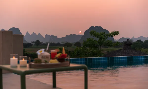 沿着大堂旁边的楼梯拾级而上,跃入屋顶的无边泳池,感受每一次日出和日落带来的绝美景色,欣赏远山近水的诗情画意;走出房间,步入私人的冷水泡池,面对着神秘平静的黑水河,亦能享受这一刻度假的放空。