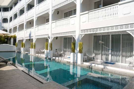 酒店小巧精致,泳池最深1.4米还有个小型的按摩池营业时间早上7点到晚上8点。前台24小时服务,服务很热情,早餐是完全素食可以鲜榨果汁,没有鸡蛋和牛奶哦。最后一天我们一早的飞机,提前和前台沟通后准备了简单的早餐带走!出门很方便离7-11很近,走到塔佩门10分钟吧。我们在这里度过了快乐的假期!