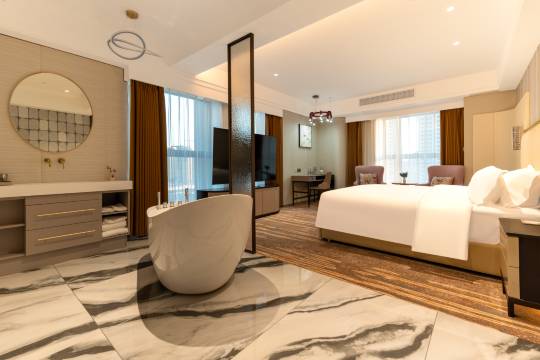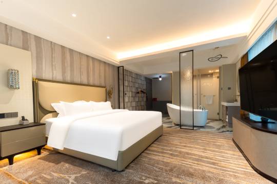 酒店停车很方便,房间宽敞明亮,干净卫生,住的很舒服;服务人员接待热情,服务用心;酒店地理位置也非常好,很便捷,总体感觉很棒,性价比很高!