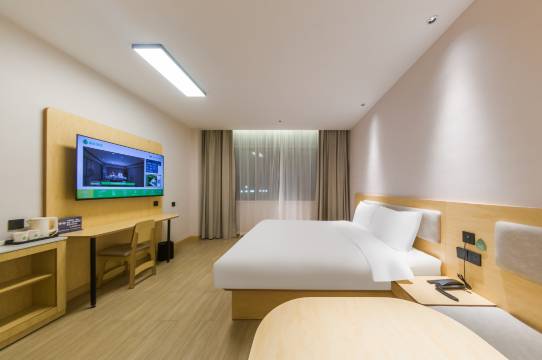 酒店坐落于新疆图木舒克市新疆政法学院,酒店房间内设计风格突出,均配有55寸液晶电视,无线覆盖等。客房时尚简约,性价比高,全酒店无线覆盖,区别于其他品牌的个性化产品以及大堂区域提供的无线宽带上网、自助洗衣、无接触自助办理入住、机器人迎宾、商务办公区域,可满足住店客人会客、上网、休息的需求。致力于为有预算要求的客人提供“欢乐、超值”的住宿产品。我们全情投入,与顾客真诚沟通,分享快乐,为客人提供愉快、舒适的住宿体验。一切从我们的“HI”开始。