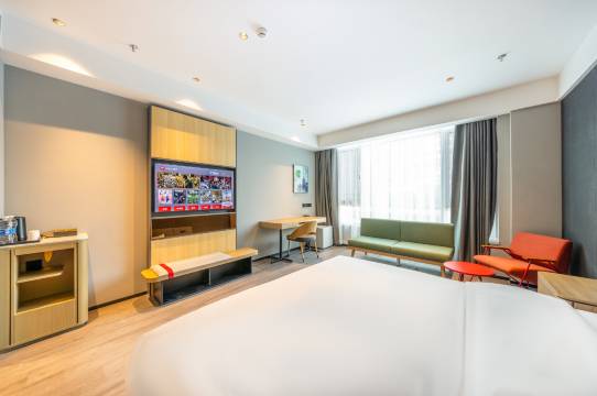酒店离高铁站很近,房间干净卫生,前台服务态度很好,里面有投影仪,适合看个电影,环境也很OK,隔壁有美食广场,吃吃喝喝很方便,性价比超高