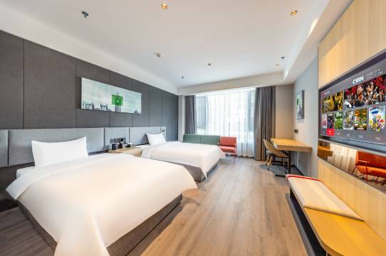 干净整洁,交通方便,服务态度很好,热情,免费停车,离高铁站近,有美食广场,设施是智能的,有小爱同学,热水24小时,免费无线网络都很方便,环境优美,值得推荐,