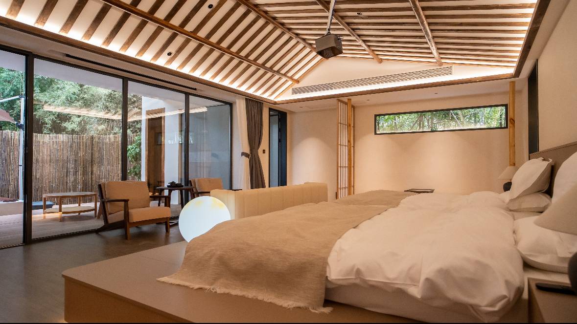 植物园里的山居民宿,110平的超大亲子房,鸟语花香的,含氧量满满,还可以撸猫、泡汤,小朋友超级满意~