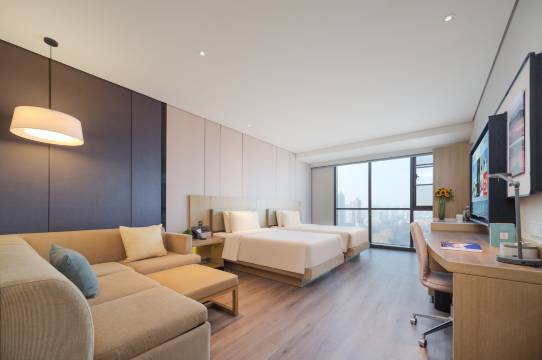 酒店交通便利,离地铁100米即到,房间宽敞,位置安静,结构布局比较合理,床品舒服易入眠,窗帘通过按钮控制,落地窗视觉开阔……阿姨每日打扫卫生,及时补充用品,最后一天因为高铁时间和前台商量延迟退房,很爽快的答应了……要改进的是早餐种类比较少,房内灯光可以再提亮一些……