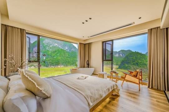 潜藏在深山幽谷中的桃花源,民宿选址为贵州小众秘境—安顺·天印山,这里孤峰独立,草甸牛马成群,空谷传响,山野幽静。在民宿避世而居,享受山居生活的惬意与安静。民宿现有多间侘寂风客房,另外还悉心打造诸多配套:泳池、“山谷草甸”露营基地、观景天台等。体力允许的情况下,可以自行徒步民宿附近的大圣之眼,贵州之美就在这无尽的山峦之中徒步山野,水潭倒映山色似行者悟空,来到人间,徒步天堂——安顺坐拥众多小众秘境徒步天印山“大圣之眼”领略“峰林、钟乳石、天生桥”等绝美风光。