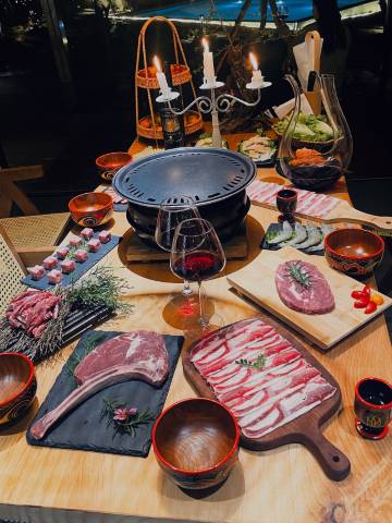 晚餐不想出去觅食,直接就在民宿解决了,每人100元,有火锅有烧烤,任君选择,分量也非常足,5大1小根本吃不完。