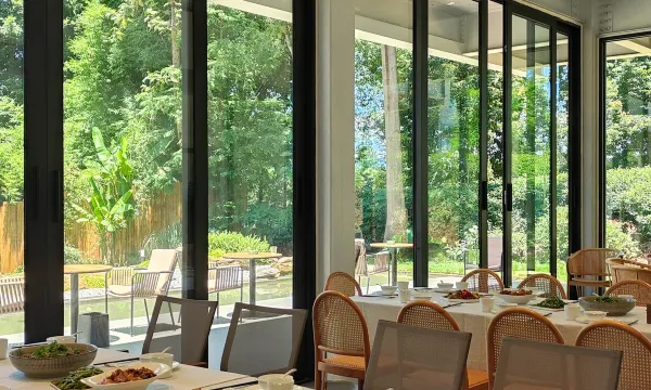 民宿坐落于雨城雅安的一片茶园里,占地面积约10亩,背靠竹林,面朝茶园,远眺周公山;不仅pm2.5指数较低,湿润的空气中还弥漫着茶叶的香气,是夏日避暑,冬日泡汤赏雪,体验感受茶乡文化的上佳去处;民宿公区有草坪、营地、餐厅、会议室、棋牌室、咖啡吧、品茗坊、展厅、观景台等;民宿房型丰富,设施齐备,超大面积与开间的房间,使住宿体验拉满,配合大开面的落地窗,拉近了房间与环境的距离,仿若置身与一篇翠绿之中;民宿以茶文化为主题,以“绿”为背景色。在研学、培训、手工体验上积极开拓,秉持开放包容的原则,欢迎各界朋友莅临。