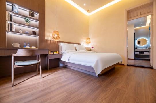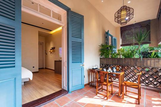 中式传统居家风格的客房:每间客房都具有闽南特色的茶文化气息,房间内不仅配备了中央空调还有时尚的智能家居及古色古香的中式茶桌,使每位居住在这里的贵宾享受闽南风情的意境。独具特色的阳台茶吧,眺望日光岩看日出日落。在你尽享鼓浪屿的喧嚣与繁华后,沉浸在茶香氤氲中感受琴岛的宁静与浪漫,身心俱养。