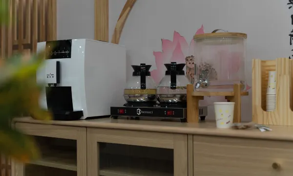 这里有自助的咖啡,小糖果小点心也很精致,还有免费的茶台,可以办公,聊天,房间里面的投影也很棒。