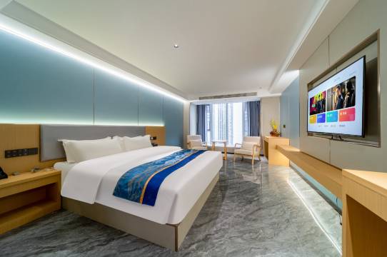 每位酒店的工作人员都非常的热情,让人感觉很舒服,环境也很赞,干净卫生,下次有机会一定会再来房间也很有特点很舒适,隔音也好酒店设备齐全,前台小姐姐说的这个入住无忧真的对外出的女性宝宝们炒鸡方便,真的强推,还有下午茶和咖啡,卸妆带,他们这都有,真的绝了而且都是一次性的,用的我也很放心,我能感觉到我被很用心的服务着,有着很好很好的体验,这两天太忙没来得及,但是对她们酒店真的影响深刻,休息的时候来评价一下,真的真的强推姐妹们早餐还是送到房间的,我要早餐的时候很早我都觉得不好意思早上五六点就要了,前台小姐姐还是给我送来而且没有一点不耐烦,真的真的很震惊很好!强烈推荐!