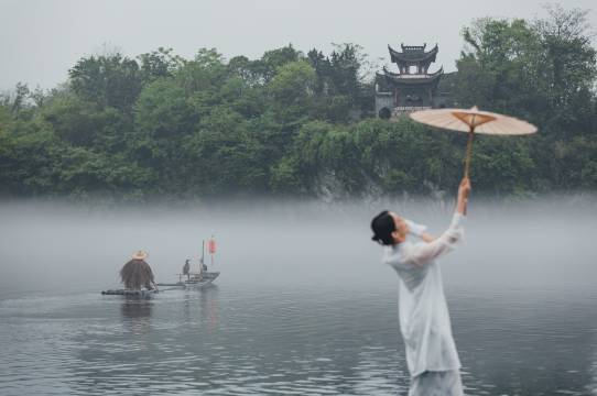 眼前是一片林了,不是新篁的嫩绿,是经了风霜的苍碧,一簇簇,静静地向着灰色的天。雨丝风片,穿林而过,便润湿了那沙沙的声响,像是山野均匀的呼吸。竹梢上,萦绕着迷离的烟霭,一缕缕,一丝丝,欲留还去,将整座青山都染成了淡淡的墨色。