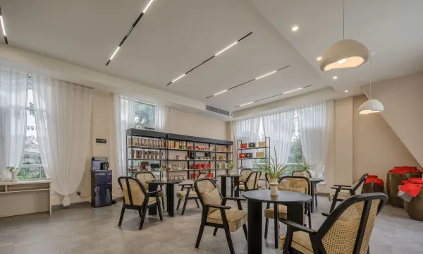 酒店房间干净整洁,干湿分离的卫生间很方便,装修也是我喜欢的风格。旁边的复古风咖啡厅,环境很好,还可以唱歌,吃完晚饭坐着喝杯咖啡,听听音乐,也是一种享受。早餐种类多,很丰富,都吃不完的,每个工作人员都很热情,服务周到,有什么问题都能及时帮忙处理