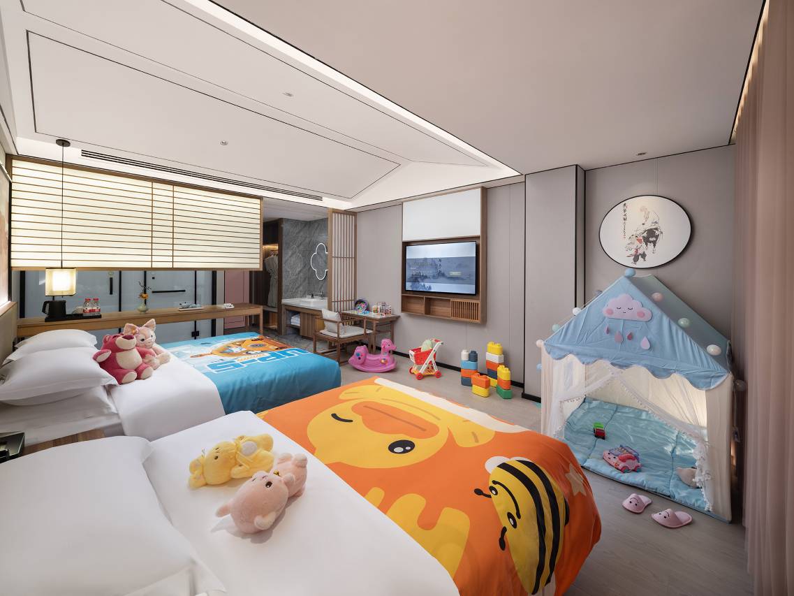 怪不得生意这么好,差点没订到,住在这里意外的感觉好,酒店文旅做的很好,服务周到,看我带着孩子,给孩子准备了儿童拖鞋牙刷,早餐居然还有蒸菜,真是很多年没吃过了啊,会员还有免费早餐午餐下午茶早餐和夜宵,不出去的话一天的饭都不用操心了。下午四点到的,大堂还有免房冰粉吃,味道不错,酒店房间赠送了水果,孩子喜欢汉服,在大厅试穿了,总体感觉挺好,下次回来还会住😁