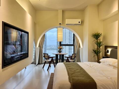 老板是室内设计师,独特多样的设计风格深受年轻人的喜爱,适合拍照打卡特别出片,既有当代艺术的美感追求,也讲究基础设施的品质和全新的入住体验,突破人们对民宿公寓的刻板印象,空间营造休闲艺术的宜居氛围,在这里朋友们可以卸下旅途中的疲意,慵懒地渡过美好假期!选址比邻大海,是整个湛江海湾城市景观线中心,10分钟可达金沙湾海滩,15分钟可达海湾对面的奥体中心超长海上城市日落海滩,20分钟可达渔港公园!是湛江商业和旅游资源配套核心的位置。清晨从美梦中醒苏醒一眼感受碧海蓝天大自然的馈赠,就如童年的梦就在眼前,这也许就是我们每个人心灵中所向往的风景吧!