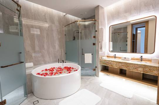入住时很幸运的升房了期待的航空房,孩子超级满意👍有儿童浴袍,儿童拖鞋,儿童洗浴用品,小朋友开心极了,一整套洗漱积极的自己完成,房间里卫生很干净,环境很明亮,还有欢迎水果,餐厅的早餐和晚餐也很美味,食材很新鲜!儿童乐园非常适合小朋友放电,送进去,家长瞬间轻松😎