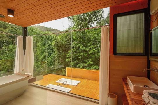 露天浴池很美,可惜水质不行,放出来的水是黄色的。