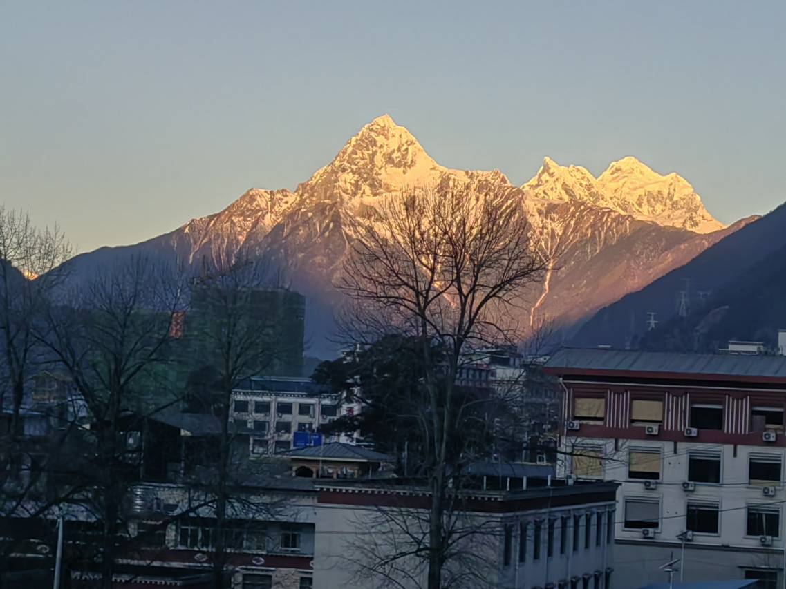 设施很齐全,卫生也很到位,透过玻璃就能看到雪山,天气好可以看到日照金山
