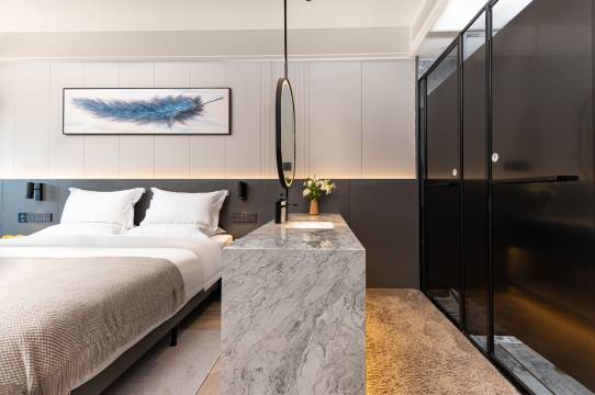 第一次订民宿,给我印像非常好,设计简约大气,符合现代人,莫老板热情周到,行前咨询他不厌其烦的回复,到达酒店泡上二种茶种的茶,并配上鲜花饼,还为我们加热,加热后的鲜花饼特别好吃。房间宽敞,落地大窗透亮,软装色系高级,全智能系统,酒店用品品味高,细节决定成败,他还配上一次性坐便套。环境好,服务好。莫老板对游玩,吃喝的方式,提供有价值的信息,给予五星评价,性价比高。