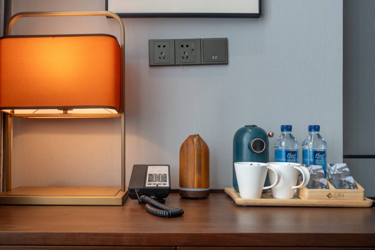 房间设施很贴心!梳妆台灯光明亮,床头柜上还配有台灯,夜间看书很舒适,服务人员服务态度特别好,很亲切。