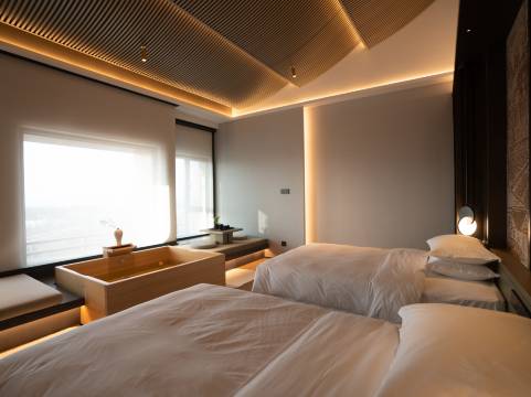 来忻州过年,这边过年气息很浓,我们住了3天。酒店就在度假村内,后面的河边也有个小型的灯会很漂亮。晚上吃完饭可逛逛很漂亮。酒店位置距离古城10公里左右,开车半小时路程。主要是去往古城路上红绿灯太多…..当初选这家酒店因为有温泉可以直接在房间,所以泡温泉很随意也很方便。房间很大,泡池也很大。整体房间设施还很新,日式风格榻榻米。每晚的room水果泡完温泉后补充水分很好。酒店的工作人员都很nice,从停车场到前台再到客房每个人见面都很主动的打招呼。有需求都很真诚的帮我们解决。办理入住时因为人多退房集中,房间打扫慢,先给了一间房,前台有个戴眼镜的帅哥一直对我们说抱歉,还主动帮忙拿行李帮我们带到房间。早餐也不错,品种多,主要面档和牛肉汤都非常不错,全家人都很喜欢,每天不重样。退房查房后还打电话提醒我们遗漏的化妆品。真的很赞。酒店烟火气很浓,很有年味,虽然很火爆,但是服务质量wzl没有下降,服务wy人员很热情,值得推荐。希望一定保持下去,下次见。