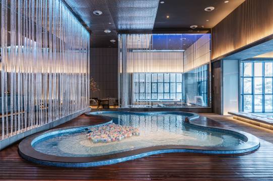酒店位于牧马路与凤西街交叉口东北角,沐浴在云中河周围,建筑功能以温泉疗养为主,包括温泉艺术酒店区、温泉院墅康养区、温泉沐浴文化区三大版块。主楼区部分房间内配有进口桧木泡池;院墅区有9栋高端别墅,其中4栋别墅配有室内温泉及庭院温泉;温泉沐浴区共有32个不同功能的温泉泡池,配有室内温泉、户外温泉泡池、SPA空间、户外无边泳池(仅对住店客人开放)、室内泳池、休闲体验区、水果饮品区,是您旅行、度假、康养、聚会、商务洽谈等的优选之地。
