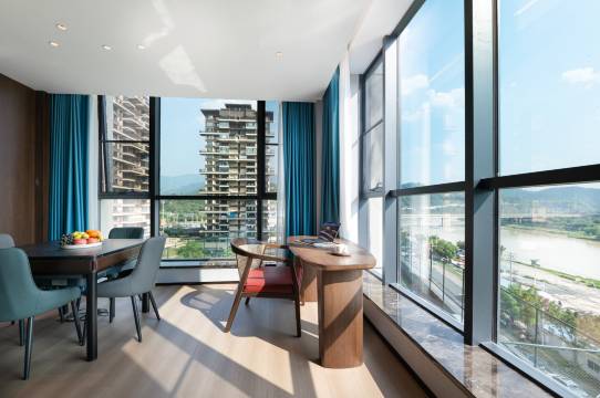 超预期的好,酒店大厅大气,走廊走起来舒服。房间智能化,进门不用查电卡,自动开窗,只能马桶,选品高端大气上档次。停车方便,充电桩又快又便宜,还有阶梯电价。