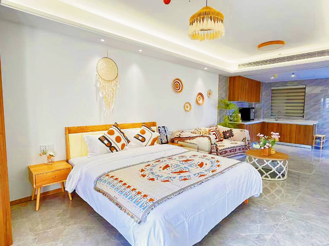 带家人出来玩选这里太对了!老板帮忙拿行李,接送周到。房间宽敞干净,老人孩子都喜欢在阳台看海看红树林。去景区超级方便,白天拍照,晚上看秀,全家人都满意,下次还来!