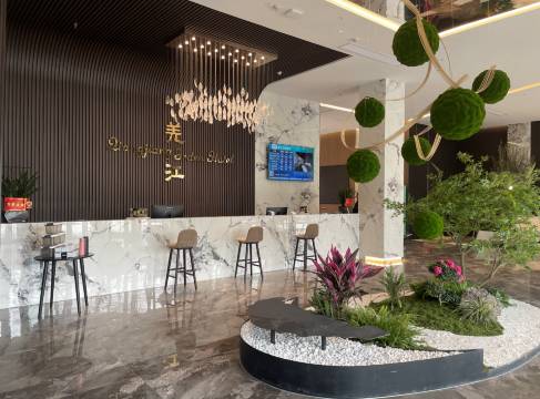 酒店位于“两岸青山相对出,一江碧水自中流”的夹江县,坐落于夹江县东风堰世界灌溉工程遗产公园,距离重点文物保护单位(4A级景区)千佛岩4分钟车程,乐山市区25分钟车程,峨眉20分钟车程,距成昆高铁乐山北站4分钟车程,地理位置极为优越。酒店视野开阔,环境优美,可方便往返于市区及旅游景点。 羌江花园酒店是集住宿、餐饮、茶楼、娱乐、商务会议为一体的多功能、智能化的综合性精品酒店。酒店面积约8000平米,外观豪华典雅,内部装修新颖别致,拥有设施先进的豪华房、观景房、主题房、亲子房、电竞房等各种不同风格的多种房型,茶坊大厅,包间,能让您充分体验到物超所值、温馨浪漫的享受。 为满足宾客的多层次需求,酒店还设有餐饮、浴足、会议室等多项服务和休闲娱乐设施,配套项目齐全。并配有现代化的投影系统、地暖新风系统、智能机器人设备、无线网络覆盖,新能源汽车充电设备等。 酒店设计优雅唯美、闹中取静,为旅游、商务人士提供了优美的居住环境。酒店“以人为本,宾客至上”的经营理念、提供舒适、温馨、便捷的服务,热忱欢迎您的到来!
