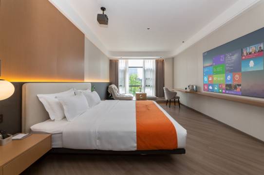 房间挺不错的,从办入住到退房 服务员们都很热情,早餐品类也很丰富是自助的,外卖也很方便,是酒店机器人给送的,房间里面也是全屋智能的,非常不错,房间很干净,很宽敞,还有免费水果不错不错,大力推荐😁