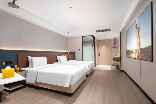 房间设置齐全,是连锁酒店。空调制热效果好,有免费停车场。房间里是全智能的,呼唤小度就可以了,每个房间都有大飘窗,视野效果很好。前台服务也很好,值得推荐。