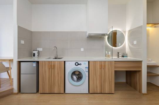 本店以日系公寓装修设计结合酒店式服务,即提供便捷、干净、温馨、私密的基础住宿需要,也满足大屏影音、长短住的洗衣烧饭等个性化需求。 同时我们采用无人化自助入住系统,为客人提供更好的隐私。