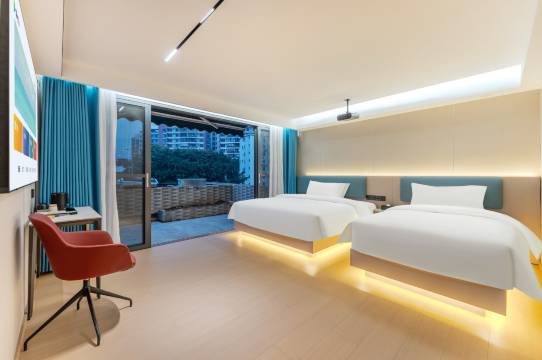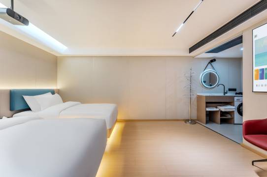 酒店离广铝中心旁步行8分钟即达,新开业,房间有全屋智能,智能客控,智能马桶等等,落地窗看广州塔很惬意;房间带有独立洗衣机,连洗衣液都有,商务出差很方便