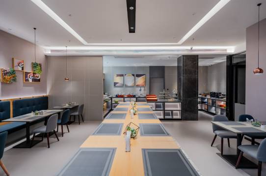 有地下免费停车场,方便自驾游客,自助早餐品种多,客服姐姐态度热情有礼貌,主动打招呼,小度很方便,房间空间还是比较大的,门口🈶小超市,外卖有机器人送