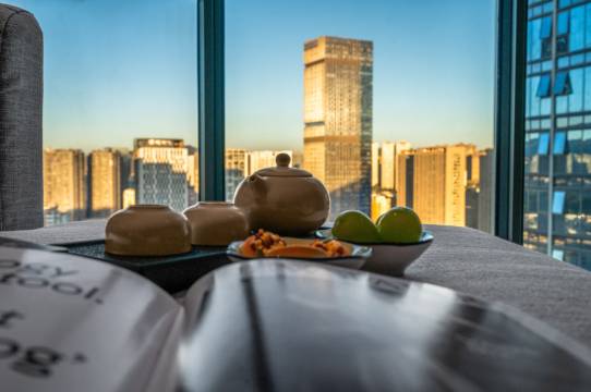 璟睿酒店地处昆明市区北京路中段商业繁华地段,位于北京路与景秀路交叉口美的置业28楼。这里是北市区中心,左邻欣都龙城、财富中心商圈步行6分钟左右,右邻同德-昆明广场步行约10分钟。酒店出门就是金星地铁站A口,乘坐2号线直达昆明站地铁站,约25分钟左右;直达昆明高铁站,约56分钟,距昆明景点世博园、金殿、昆明老街、翠湖公园方便快捷,距离云南财经大学步行约14分钟,毗邻大型茶叶批发市场、金实小区美食街,吃、喝、玩、乐、购一应俱全。我们提供免费的地下停车场,让您的自驾游更加轻松无忧。酒店设有各类精致客房,房间房型多样。所有客房均配有定制沙发,柔软贴身的亲肤品牌棉织品及品牌床垫,为您打造舒适的休息空间。房内配有全屋小爱智能语音客控系统、智能马桶、中央空调、65寸液晶电视或立体音效的极米投影、干湿分区卫生设施、24小时热水等,硬件设施完善,配套齐全,给您享受家一般的服务体验。提供免费咖啡,玫瑰奶茶,零食或水果,自助洗衣房,无论您是出差还是出游,选择璟睿酒店,您将享受到一个舒适便捷的旅程。欢迎来到我们的世界,我们期待与您的每次相遇!