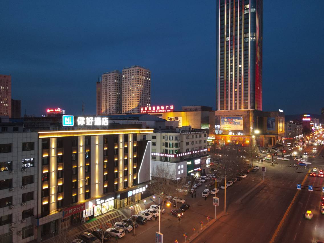 你好酒店是华住会旗下新晋的超高性价比多元精选新青年酒店品牌。酒店位于吉林市解放中路与吉林大街交汇西行1分钟(市中心黄金地段),酒店附近有多条公交线路,乘坐1、3、33、58、40、44、45、46、48、101、140、808路即可到达酒店,酒店毗邻市中心商圈:吉林财富购物广场(步行约3分钟)、物华商城(步行约2分钟)、天津街批发市场、万达影城、国贸购物、东市场、百货大楼、河南街步行街、大东门、周边购物餐饮娱乐场所便利齐全,步行至北华大学附属医院约3分钟,吉林市中心医院约5分钟,吉林市儿童医院约10分钟。客房采用高品质零压床垫,为您睡眠质量保驾护航。超大LED美妆镜,使您出行美美哒。55寸超大液晶电视,即刻享受震撼视觉的盛宴。酒店引进华掌柜自助办理入住和机器人送物等服务,节约您的宝贵时间,保证您的安全。大堂简约轻奢商务区与网红拍照打卡墙完美结合,为您营造出一个娴雅的社交氛围和温馨小憩的环境,另外酒店配备洗衣房,行李房满足您的出行需求。酒店周边集购物娱乐休闲于一体,是您商务出行、休闲旅行的多彩之选。