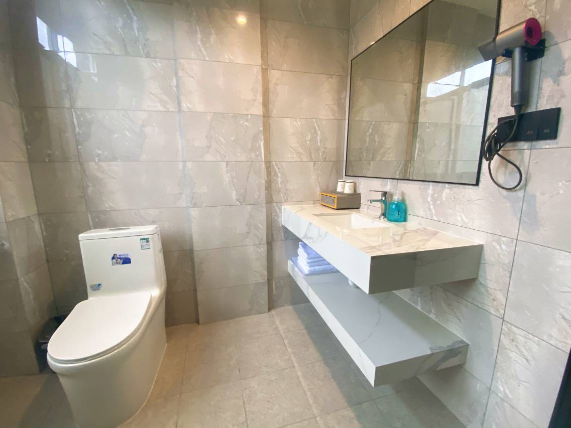 新酒店环境可以,很安静。就是投影弄了好久也没弄好。酒店内有专属停车场方便停车。就是房间赠饮水品牌和酒店装修档次不适配,楼下还有桌球可以玩