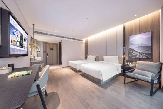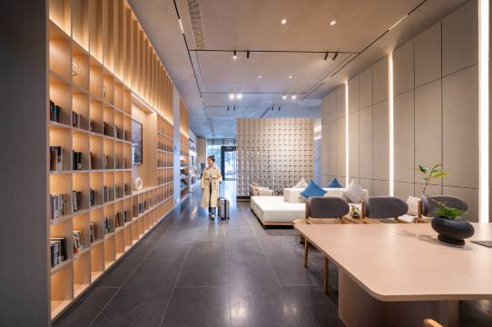 酒店毗邻五一广场商圈,福久源新天地,国贸新天地,满足吃喝玩乐购一体。专注服务于对生活品质有追求的人群。酒店设计理念是以阅读和人文摄影为主题,高品质的客房产品设施+细致温馨的服务带给您“自然、静谧、温暖、朴实”的健康生活方式。酒店拥有多间客房及套房,所有客房均采用堪比普兰特系列优质床品,带给您枕在云端的沉浸式深度睡眠体验;全套高端“萨和”森林浴香氛洗护系列,以野生风物为灵感来源,为生活在都市里奔忙的人们带来呵护身体,从内而外放松心灵的生活美学产品;酒店还设有相招(餐厅)、阅读会友竹居(书吧)、汗出(健身房)及24小时的出尘(洗熨烘干自助洗衣房),为您提供一个自在、放松的居停空间。