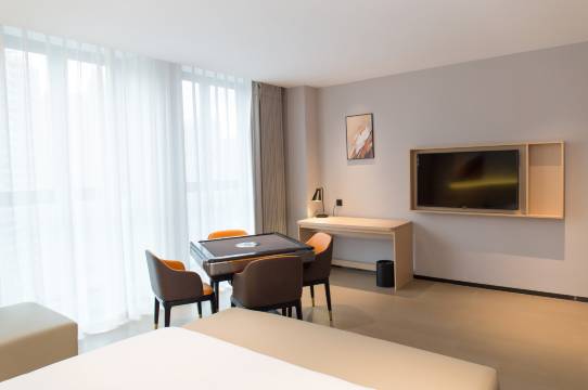 3.房间惊艳:房间真心超大,设施都很新,卫生细节到位,装修风格类似全季和亚朵。除了接待前台小气了些,入住体验堪比旁边亚朵,但是价格却低很多!性价比高!