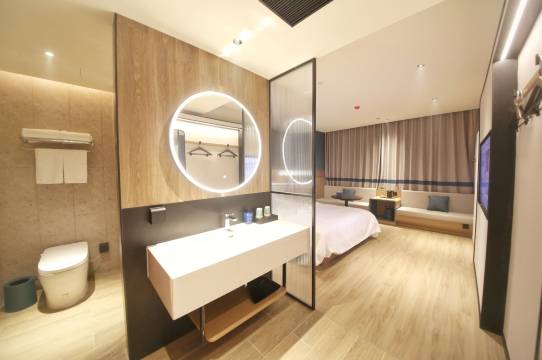 中转到济南,住了几天旅游一番,很好的体验,高级大床房的房间很大设施很全,每天都会送水给我,被子是羽绒的很舒服,床垫也很舒适,枕头也是乳胶的,司机师傅接送也很快。因为飞机延时起飞,商家还提供了延时退房,很不错的体验,下次仍会选择。