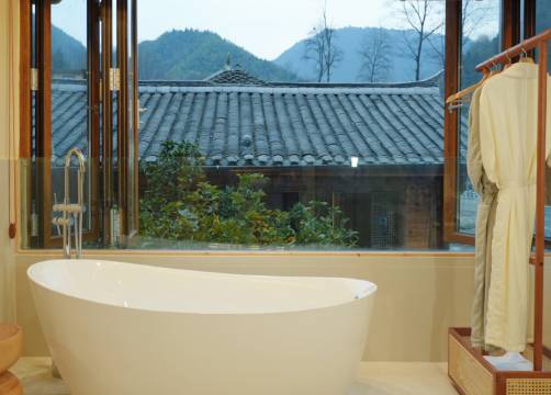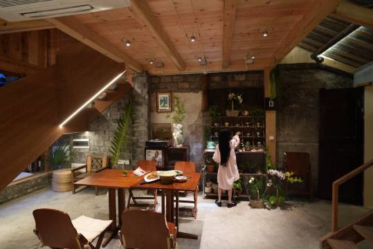 自助式入住,大门和房间门都是密码锁,一楼是咖啡馆,我们房间挺大的,挨着溪流,就是晚上回房间得走后门,环境挺好。