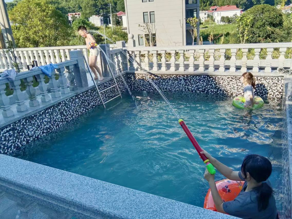 网上找的这家民宿在村子里,无论是白天还是晚上都特别安静。房间干净整洁,门口还有一个泳池,可惜我们没带泳衣也没下去玩。民宿附近步行三百多米有一个免费的公园,走进去有个小瀑布和小潭,潭水碧绿清澈,适合夏天来游泳。老板娘人特别好,我们来的路上不小心两个车胎都破了,老板娘骑电瓶车帮我去街上找师傅来修,帮我们解决了一个大忙!非常推荐,值得下次再来!