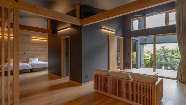 96平米的套房超大超舒服!屋外院子里的温泉池更是独特的享受。