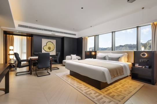 地理位置便利,在翠湖小镇,去哪都方便。门口有早茶,粤菜,超市,酒吧。房间卫生处理的很好。前台小哥也很热情。房间的小零食也好吃😋 第二次入住,给升级了套房,可以泡茶,做咖啡。非常棒!!!