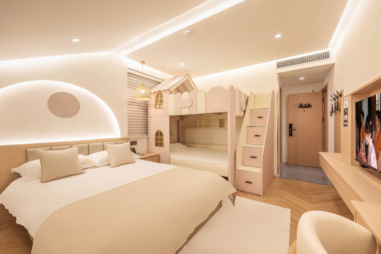 “这里的房间真的很漂亮,孩子们特别喜欢上下铺的设计,而且房间里的儿童用品也太贴心了!”一位客人评价道。