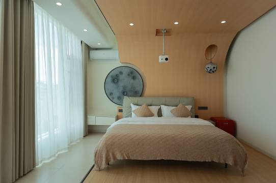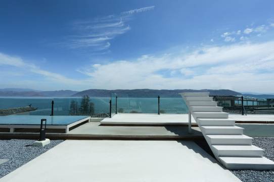 客栈是轻奢简约风,步行就可以到达洱海边(屋内配备智能客控、百米投影、奢华浴缸)。