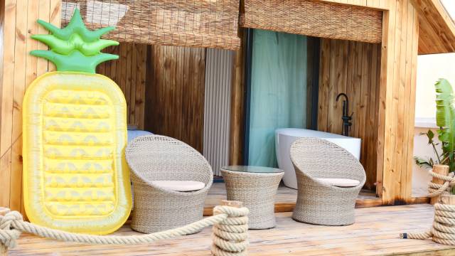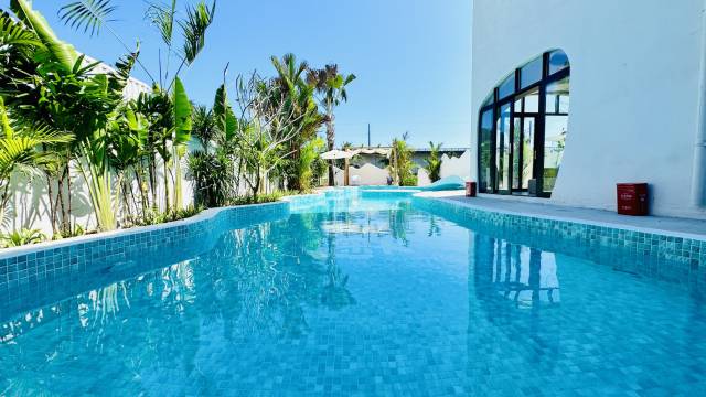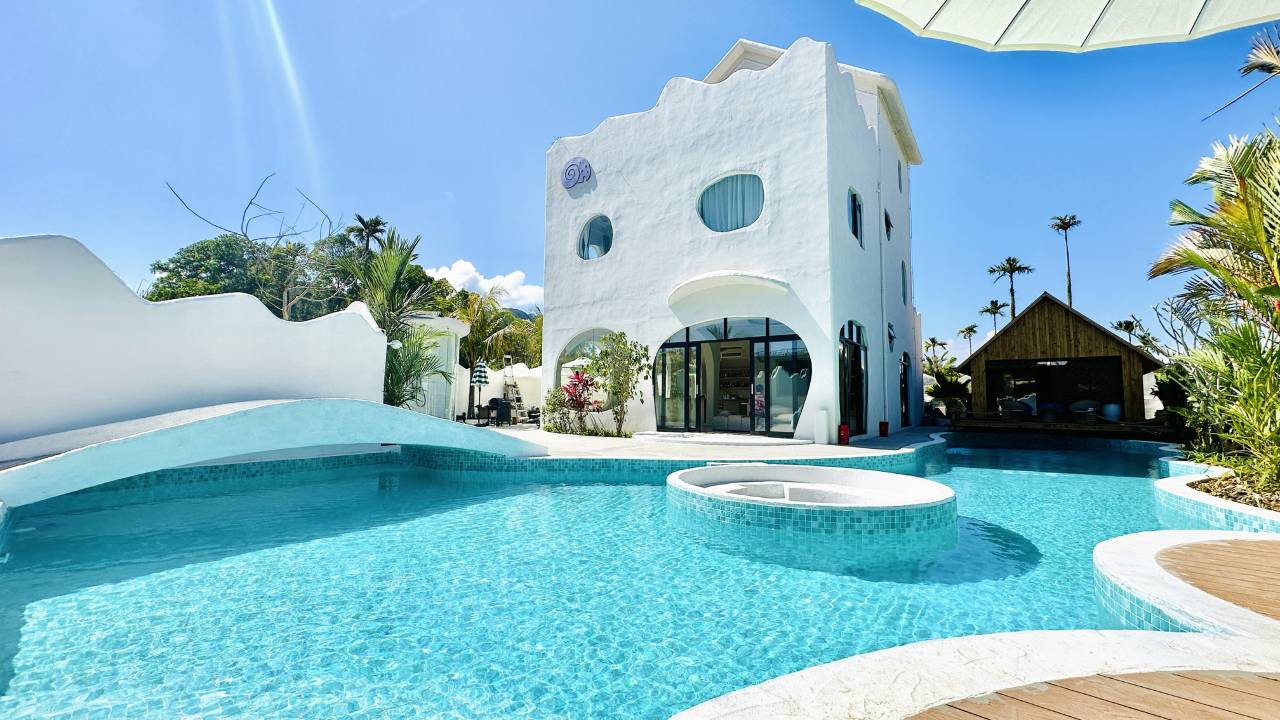 本次万宁之行入住的洞穴风泳池民宿,体验远超预期。民宿设计独具匠心,蒂芙尼蓝与奶油白的色彩搭配清新治愈,洞穴泳池与公共区域随手一拍即如ins大片,十分出片。