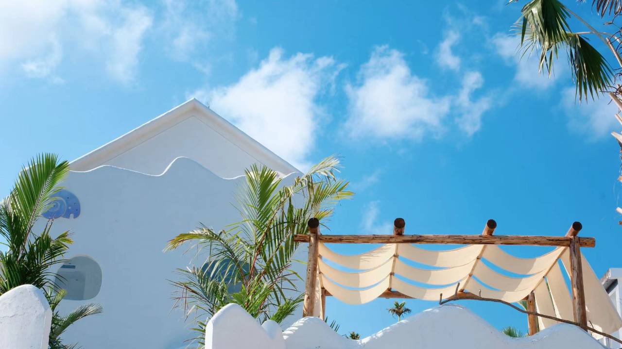 进门就被满屏椰林裹住,白色建筑像从童话里搬来的,连空气都飘着椰子香🌴